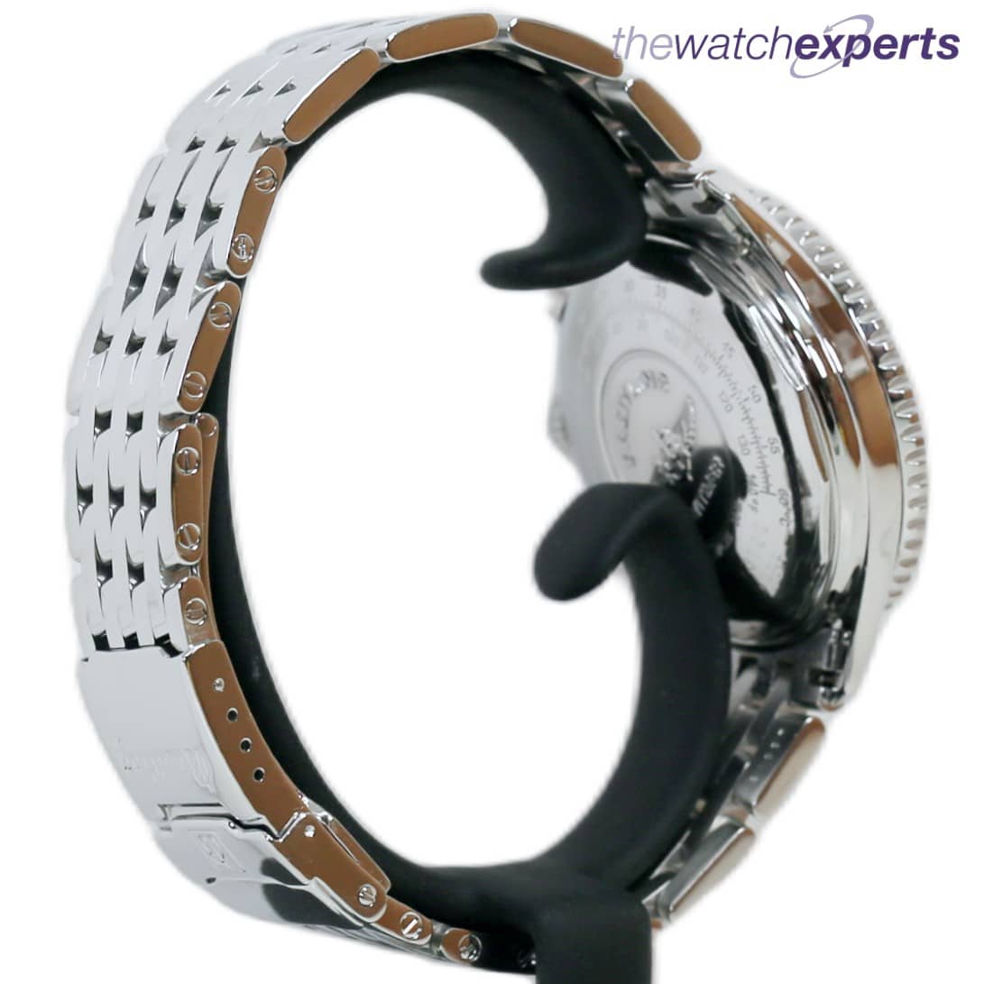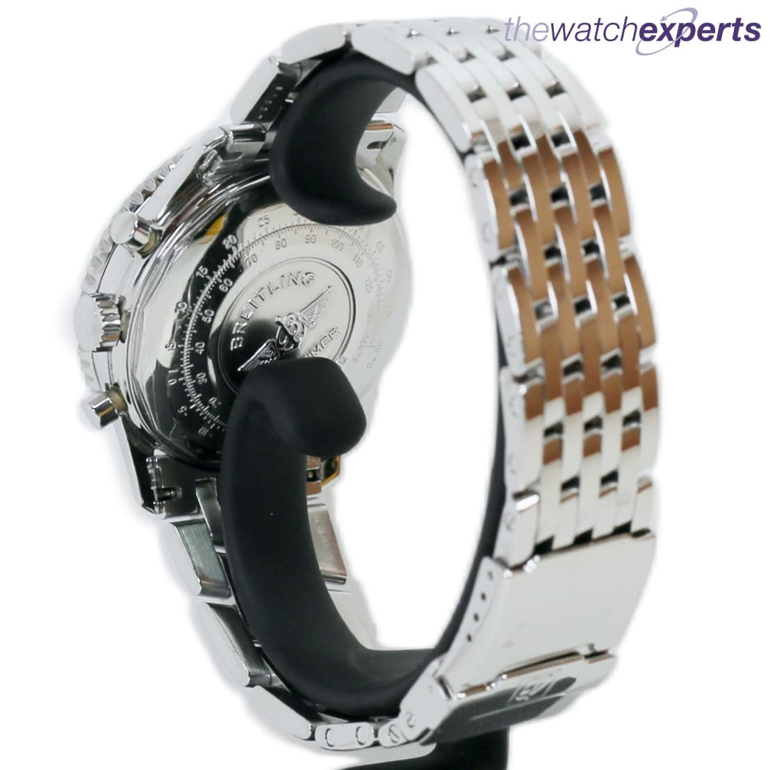 The 41mm stainless steel case with slide rule bezel houses a Breitling 13 automatic movement with black dial, white sub dials and date aperture. The stainless steel bracelet sits at 200mm on the wrist (not including the additional link).