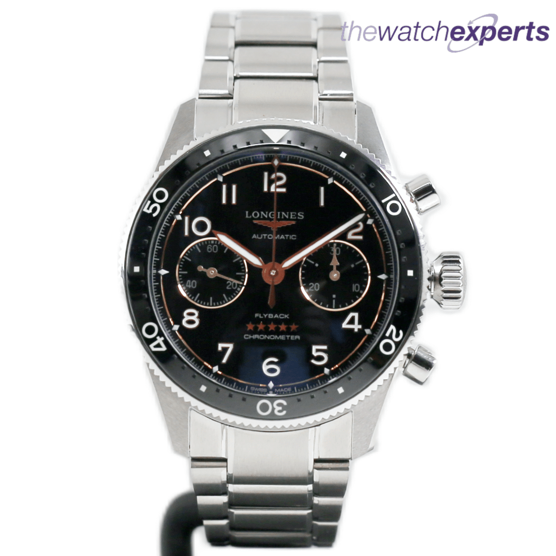 This Longines Spirit Flyback Chronograph L3.821.4 comes complete with original box, papers, booklet, travel case and warranty card dated 2025.