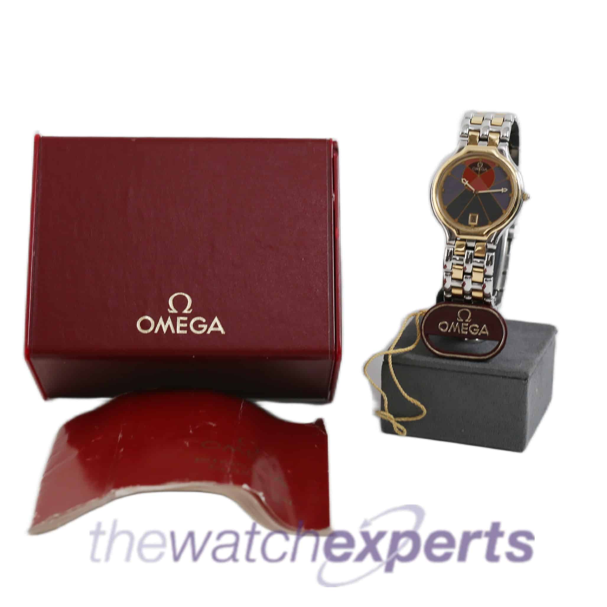 This vintage Omega De Ville comes with original box, swing tag, service paperwork dated 1994 and international guarantee dated 1989.