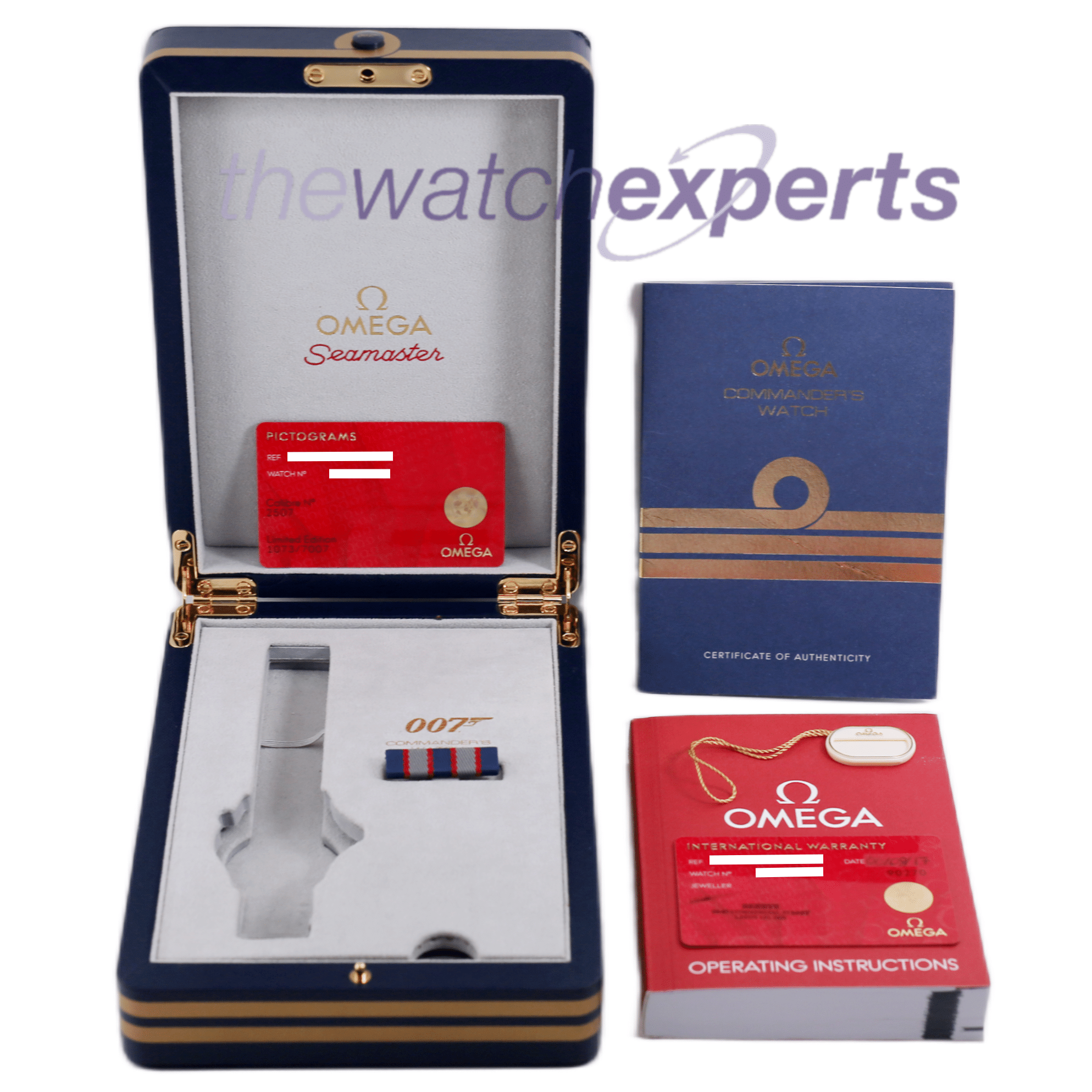 Limited to 7,007 pieces and only produced for one year, this Omega 007 Commanders watch 21232412004001 comes complete with original box, ribbon pin, papers, swing tag, spring bar tool, additional strap and warranty card dated 2017.