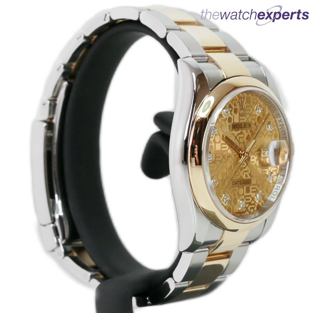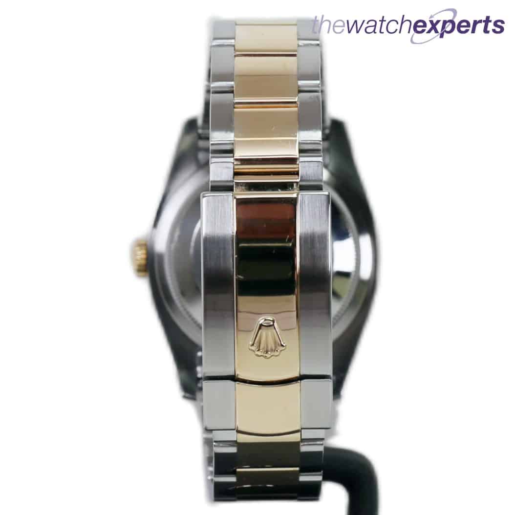 The 36mm stainless steel case houses a Rolex calibre 3135 automatic movement with quick set date function. The Rolex anniversary dial with accompanying diamond dot hour markers is encircled within an 18ct yellow gold domed bezel. The stainless steel and gold oyster bracelet with folding clasp sits comfortably on the wrist at 180mm.