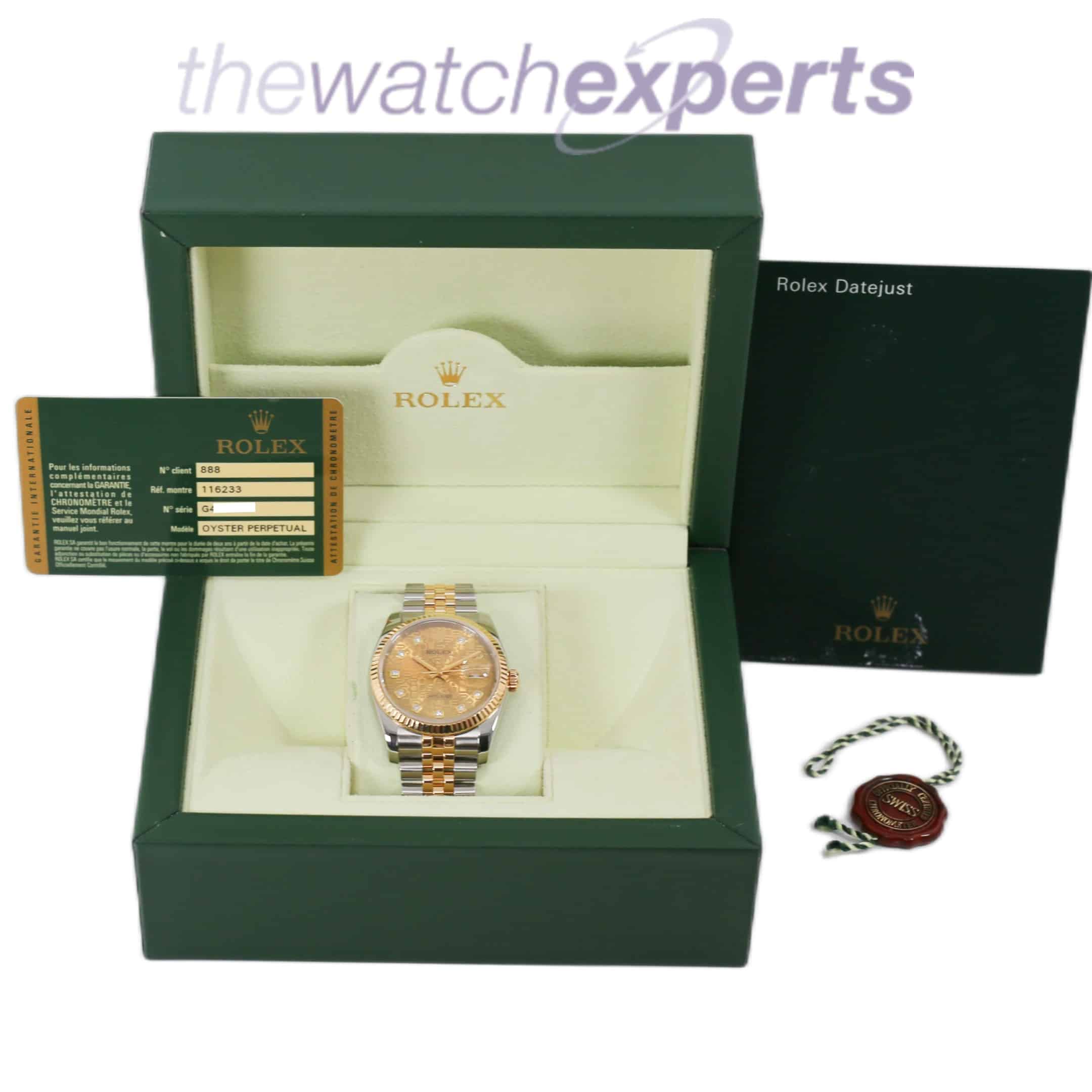 This Rolex Datejust 36 116233 comes with Rolex box, red tag and warranty card Dated 2012 (2010 serial number)