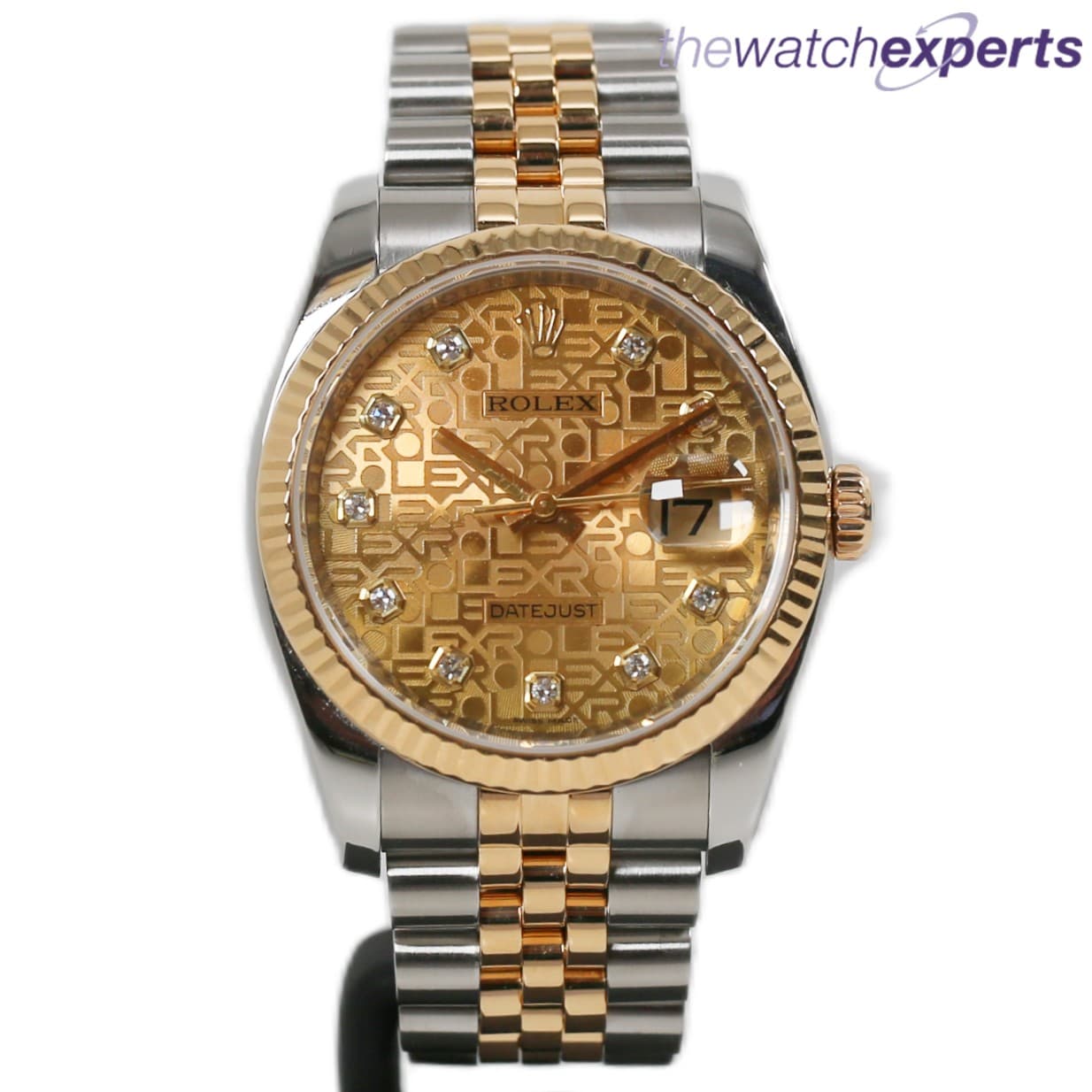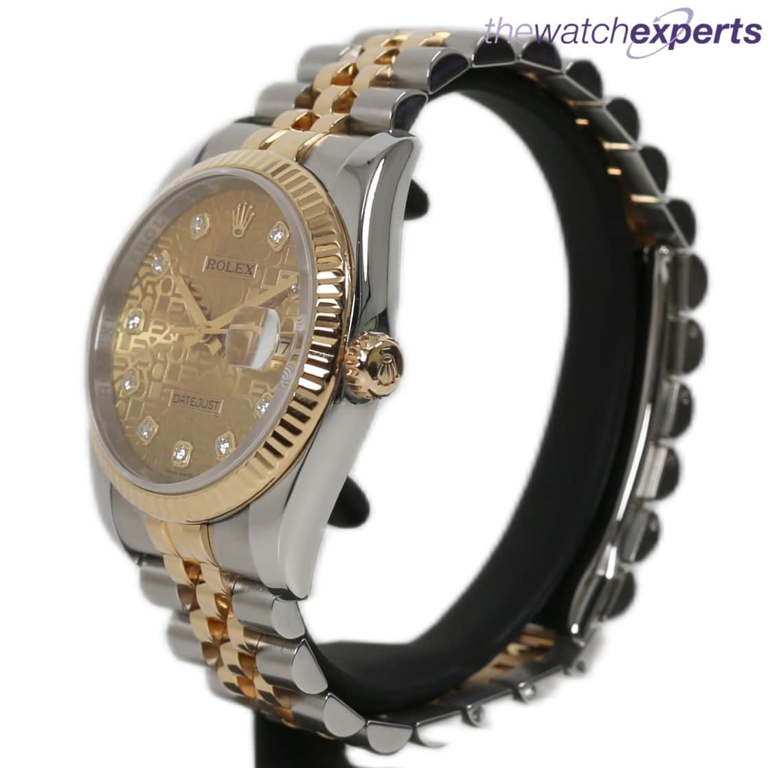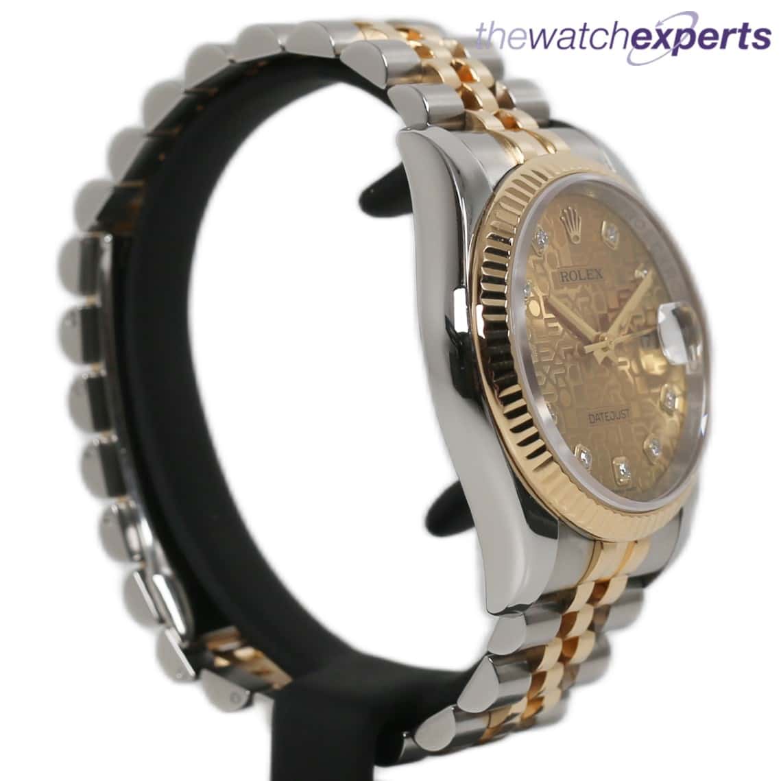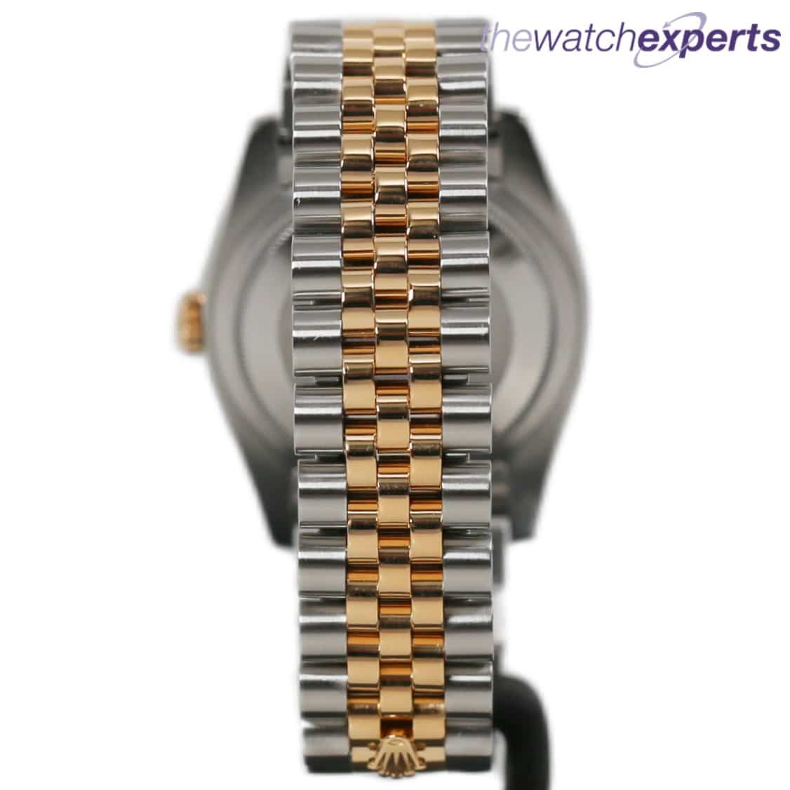 The stainless steel 36mm case house the automatic 3135 movement. Original anniversary gold diamond dot dial and 18k fluted bezel. The steel and gold jubilee bracelet with hidden crown clasp bracelet sits at 170mm.